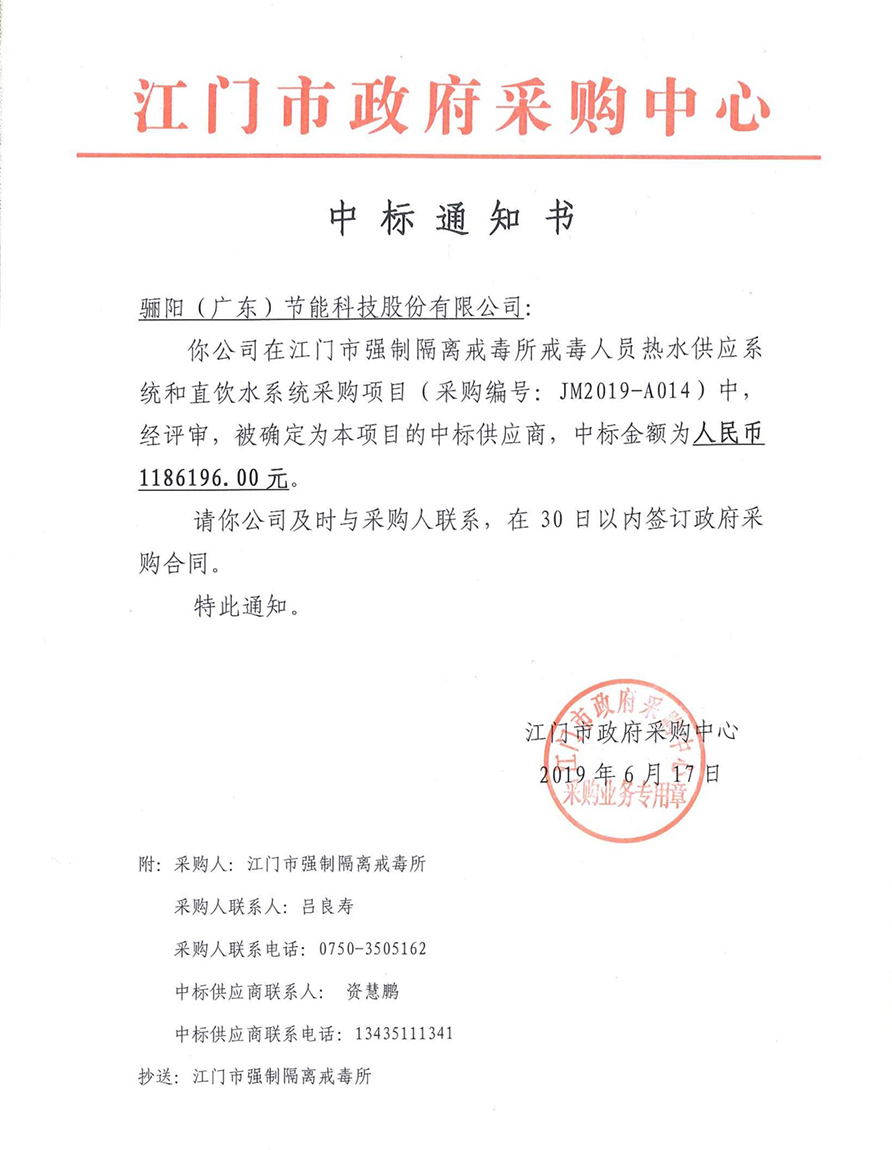 江門市熱水供應系統和直飲水系統采購項目